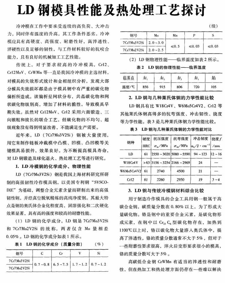LD鋼熱處理 LD鋼模具性能及熱處理